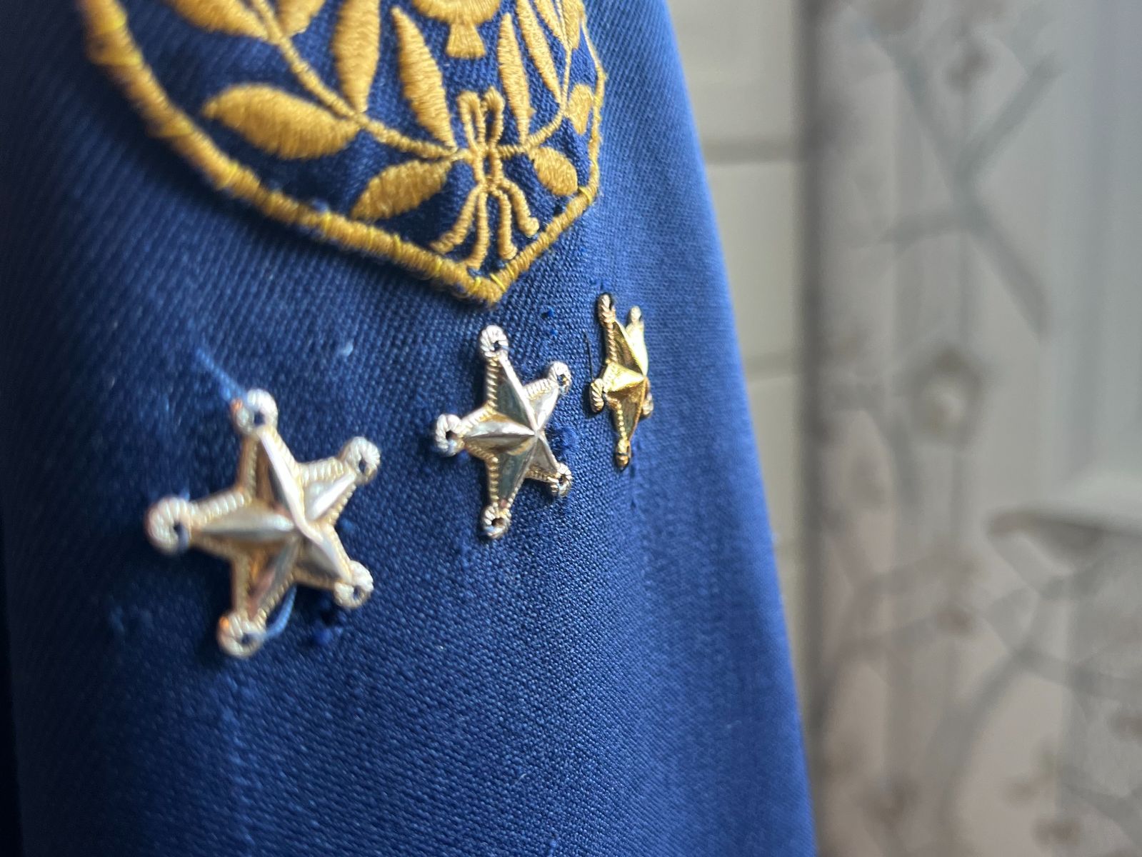 Årsstjerner sys på venstre arm, sentrert under korpsets emblem (2 cm).